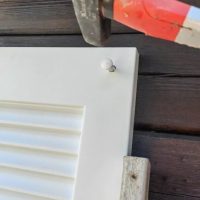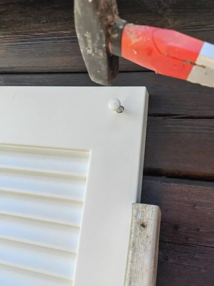 Забиваем гвоздь, если вам не требуется полная длина крепежа, то гвоздь можно обрезать. Гвоздь лучше придерживать рукой, так как материал полипропилен не твердый.