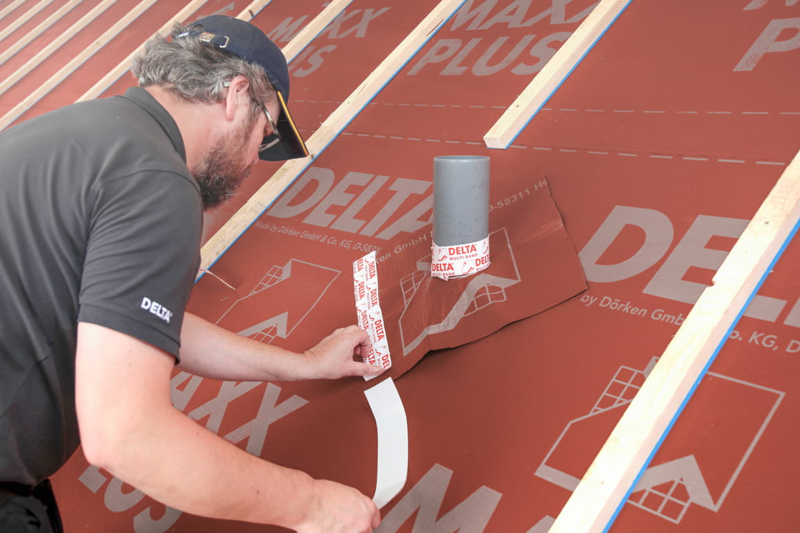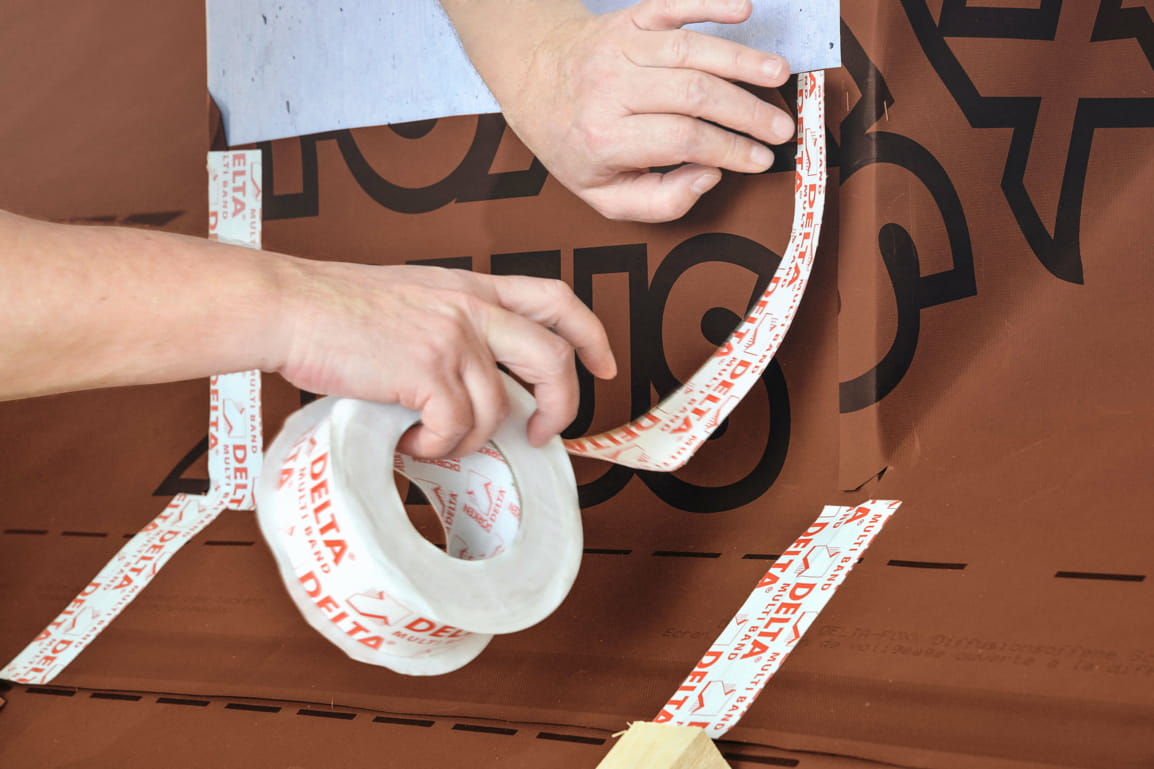 Лента DELTA MULTI-BAND — это универсальный односторонний скотч для проклейки нахлёстов гидроизоляционных и пароизоляционных плёнок, уплотнения кровельных проходок и ремонта повреждений плёнки. Основа: полиэтилен с армированием. Клеящая масса на основе акрилата (первичное сырьё) с высокой силой сцепления и практичным отрывным краем. Обладает высокой устойчивостью к старению. Имеет армирование клеящей стороны.